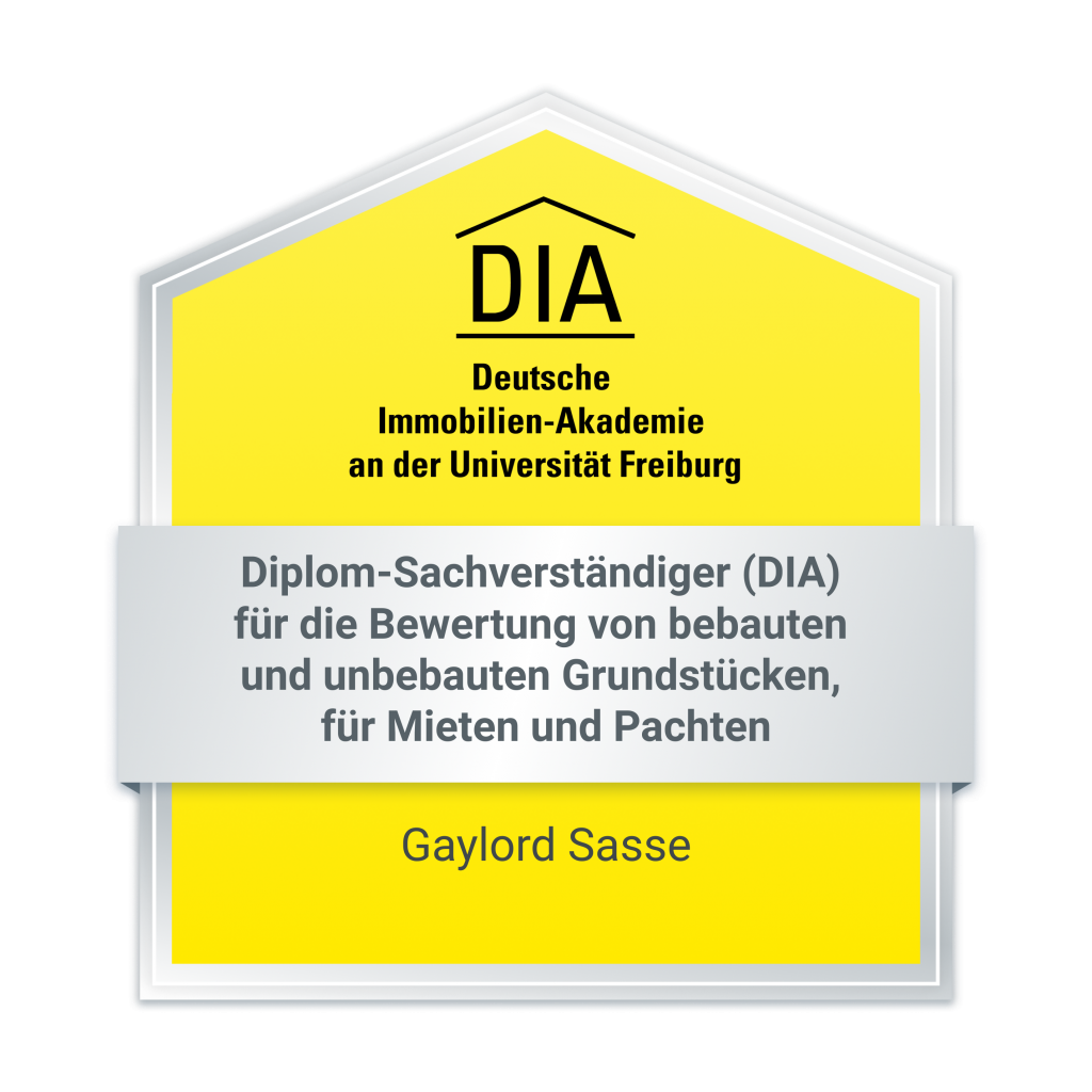 Diplom-Sachverständiger (DIA) für die Bewertung von bebauten und unbebauten Grundstücken, für Mieten und Pachten